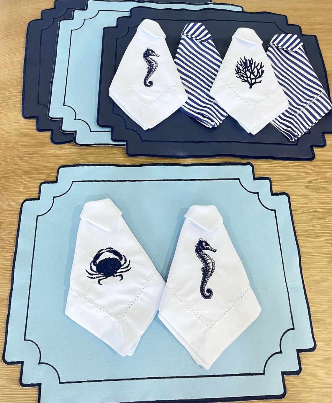 Confeccionado com linho misto de alta qualidade, cada guardanapo recebe atenção especial durante sua produção, garantindo um toque artesanal que se destaca nos mínimos detalhes.
