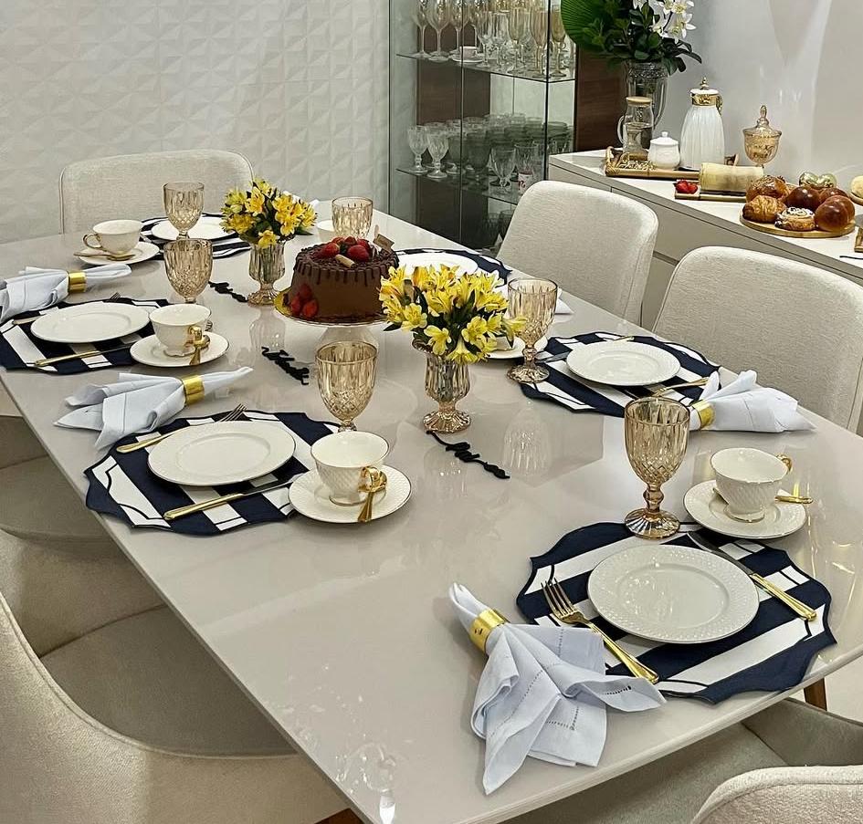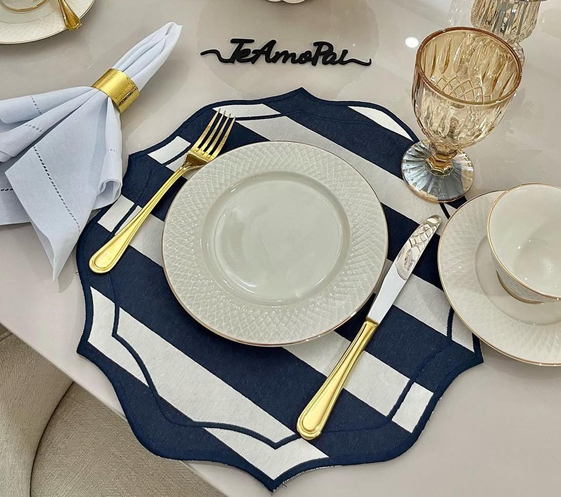 Disponível nos formatos Redondo (40 cm), confeccionado em algodão percal 180 fios, impermeável e dupla face, com acabamento em bordado delicado com linha de seda. Um toque de sofisticação, praticidade e charme para transformar qualquer ambiente. ✨🧵💧