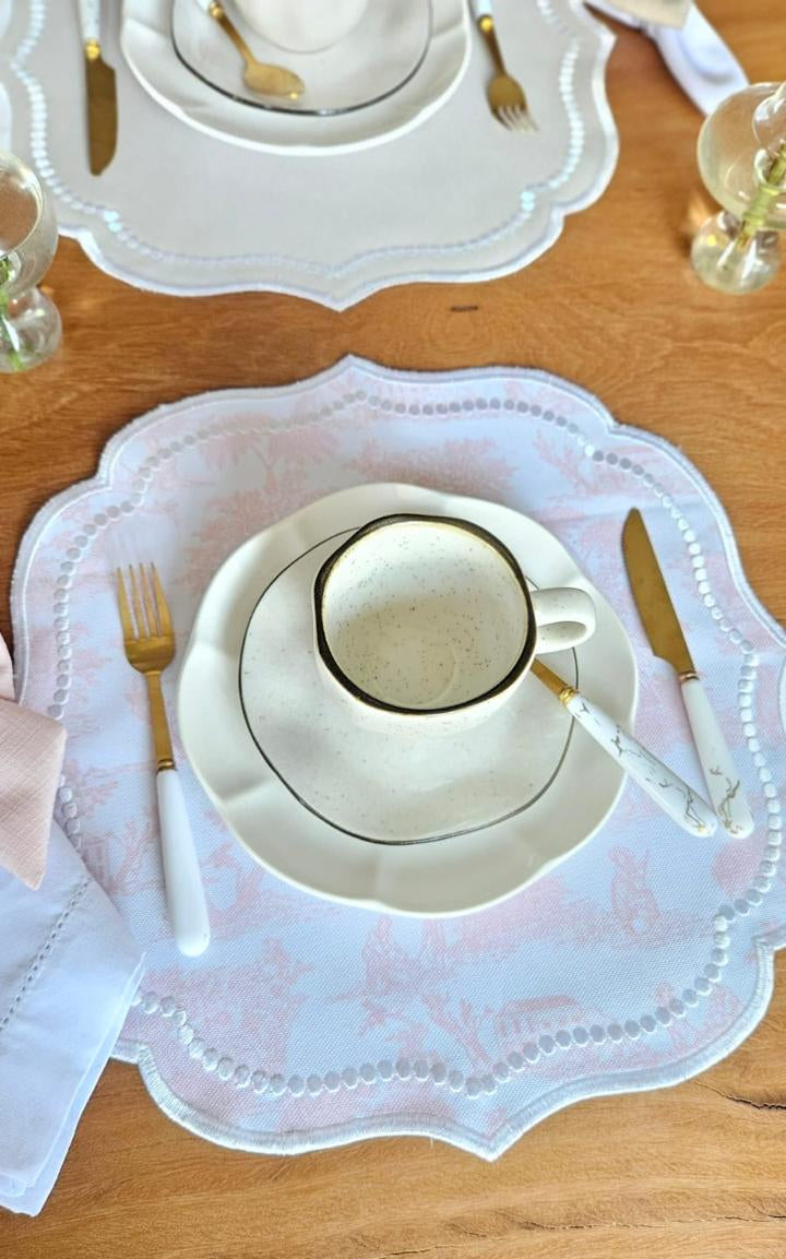 Pétalas Jouy Lugar Americano Dupla Face Charme Clássico para Sua Mesa