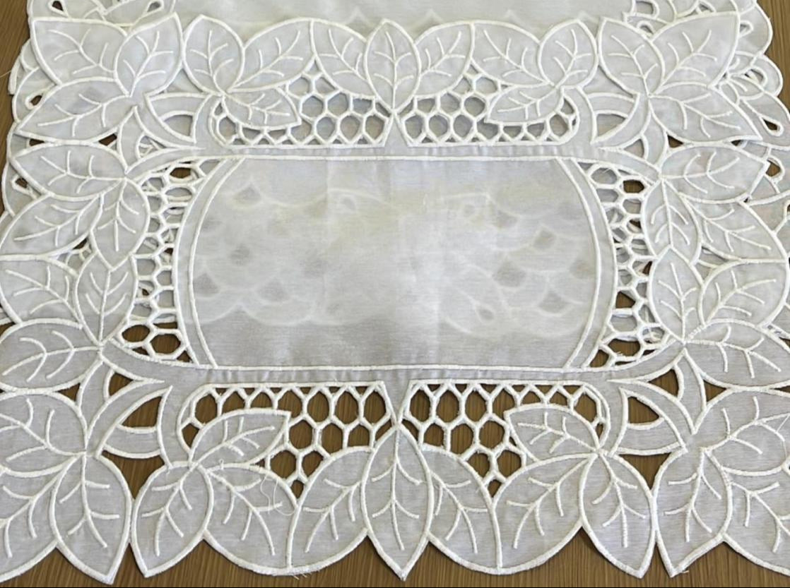 Confeccionado em tela de poliéster com algodão percal 180 fios, o jogo americano oferece um equilíbrio ideal entre resistência e suavidade ao toque. O destaque especial vai para o bordado richelieu feito com linha de seda, que agrega um charme artesanal e atemporal à peça.