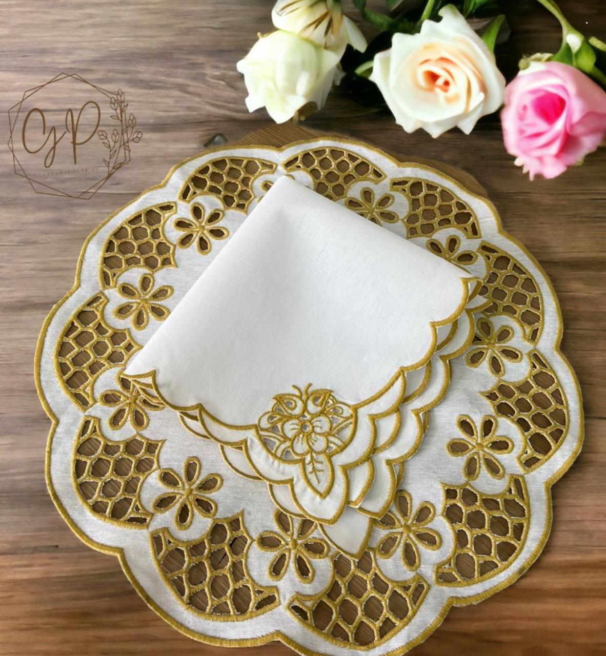 Kit Richelieu - Dourado com Branco (guardanapo + jogo americano)