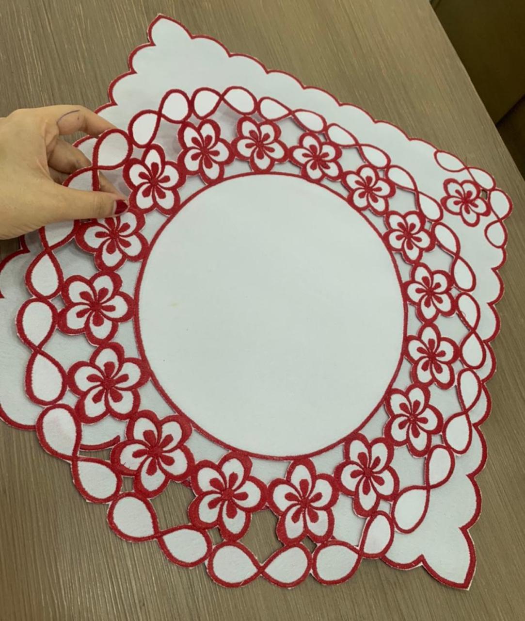 Kit Richelieu - Branco com Vermelho (guardanapo + jogo americano)