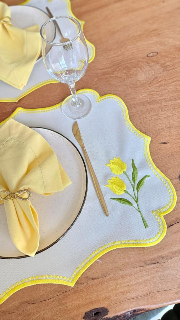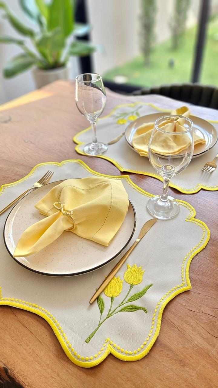 Leve o encanto das flores para a sua mesa com o nosso Jogo Americano Tulipa Rosa. Com design elegante e bordado delicado inspirado nas formas suaves da tulipa, ele combina romantismo e sofisticação em cada detalhe. Confeccionado em linho misto de alta qualidade, possui caimento impecável e acabamento refinado, ideal para compor mesas elegantes em ocasiões especiais ou no dia a dia com charme.