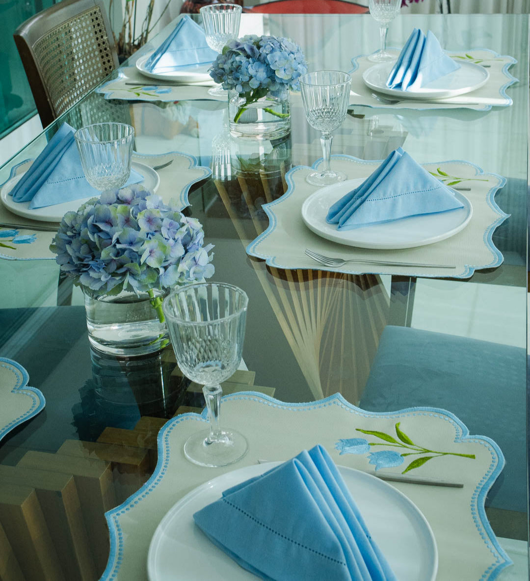 Leve o encanto das flores para a sua mesa com o nosso Jogo Americano Tulipa Rosa. Com design elegante e bordado delicado inspirado nas formas suaves da tulipa, ele combina romantismo e sofisticação em cada detalhe. Confeccionado em linho misto de alta qualidade, possui caimento impecável e acabamento refinado, ideal para compor mesas elegantes em ocasiões especiais ou no dia a dia com charme.