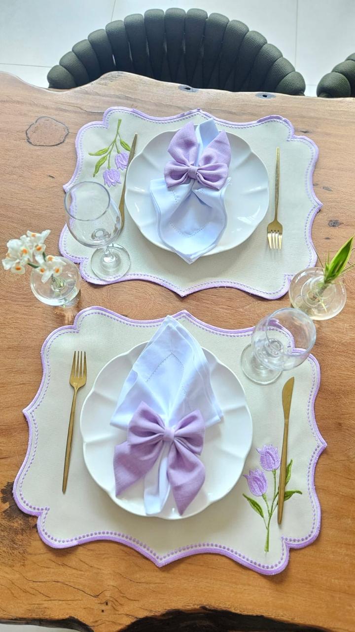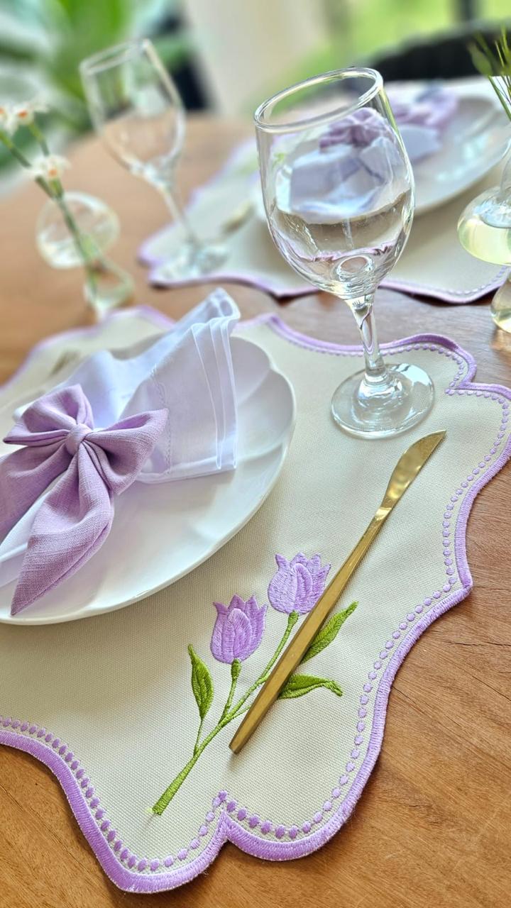 Leve o encanto das flores para a sua mesa com o nosso Jogo Americano Tulipa Rosa. Com design elegante e bordado delicado inspirado nas formas suaves da tulipa, ele combina romantismo e sofisticação em cada detalhe. Confeccionado em linho misto de alta qualidade, possui caimento impecável e acabamento refinado, ideal para compor mesas elegantes em ocasiões especiais ou no dia a dia com charme.
