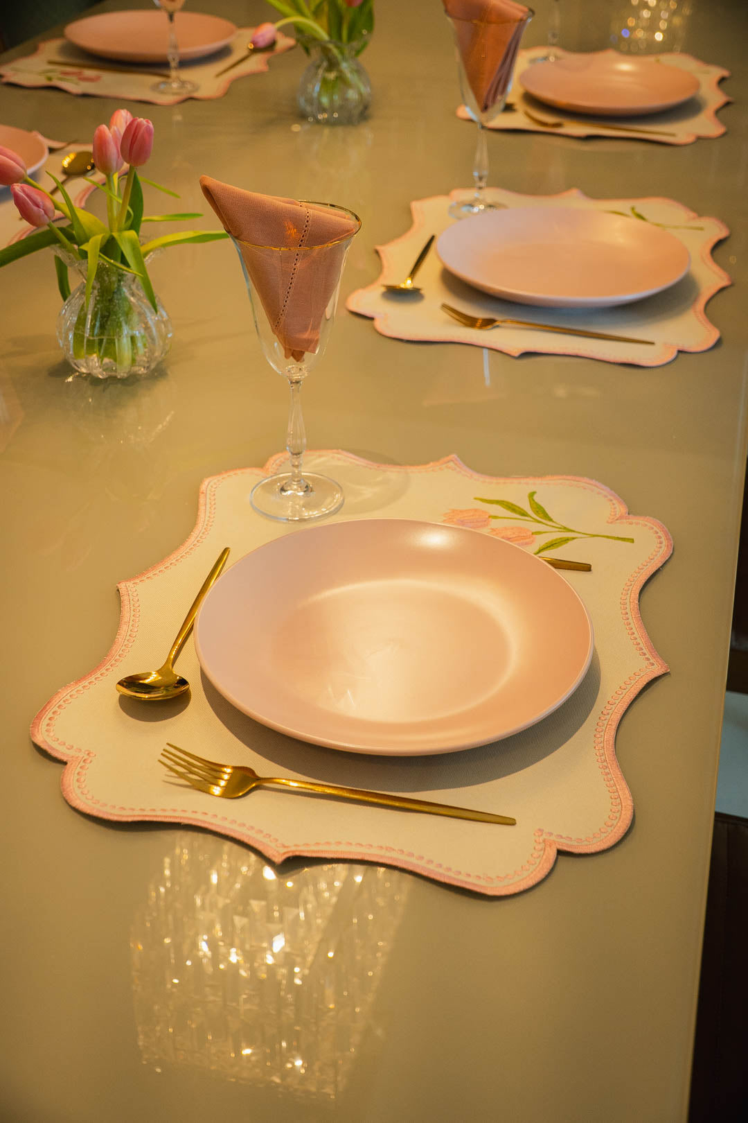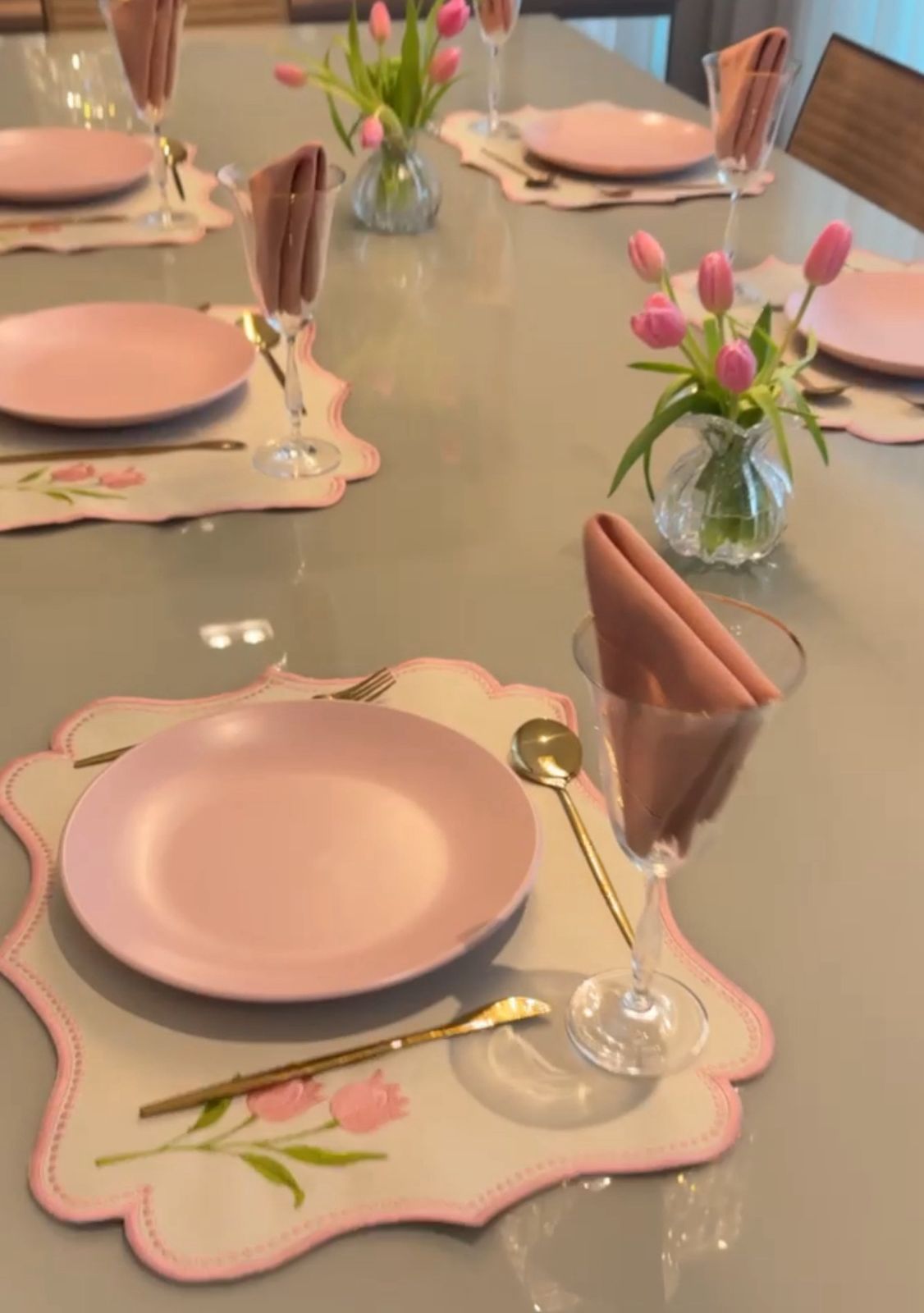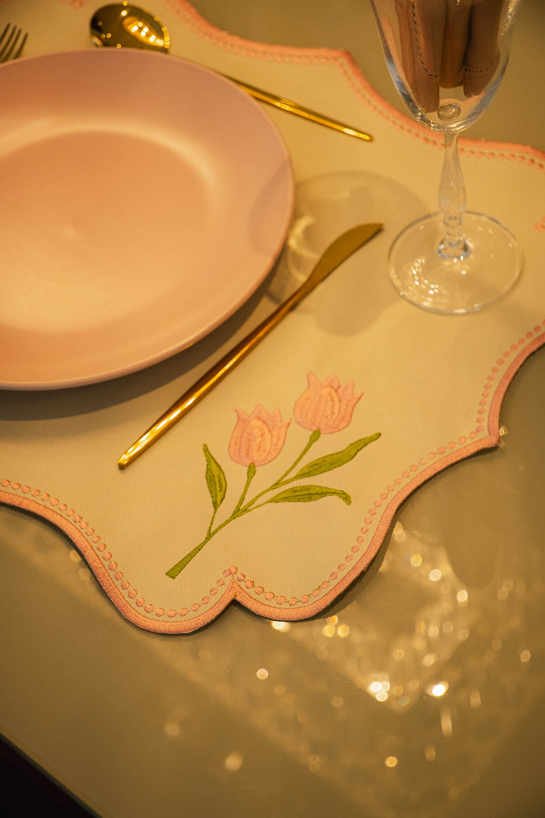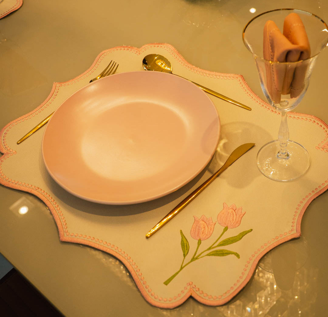 Leve o encanto das flores para a sua mesa com o nosso Jogo Americano Tulipa Rosa. Com design elegante e bordado delicado inspirado nas formas suaves da tulipa, ele combina romantismo e sofisticação em cada detalhe. Confeccionado em linho misto de alta qualidade, possui caimento impecável e acabamento refinado, ideal para compor mesas elegantes em ocasiões especiais ou no dia a dia com charme.