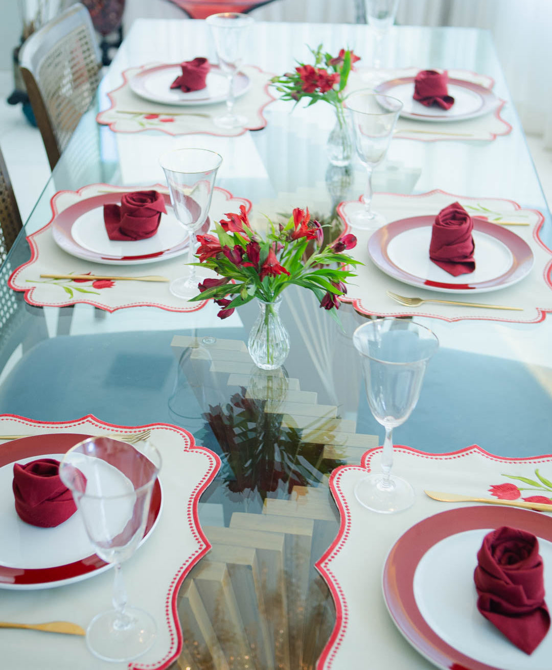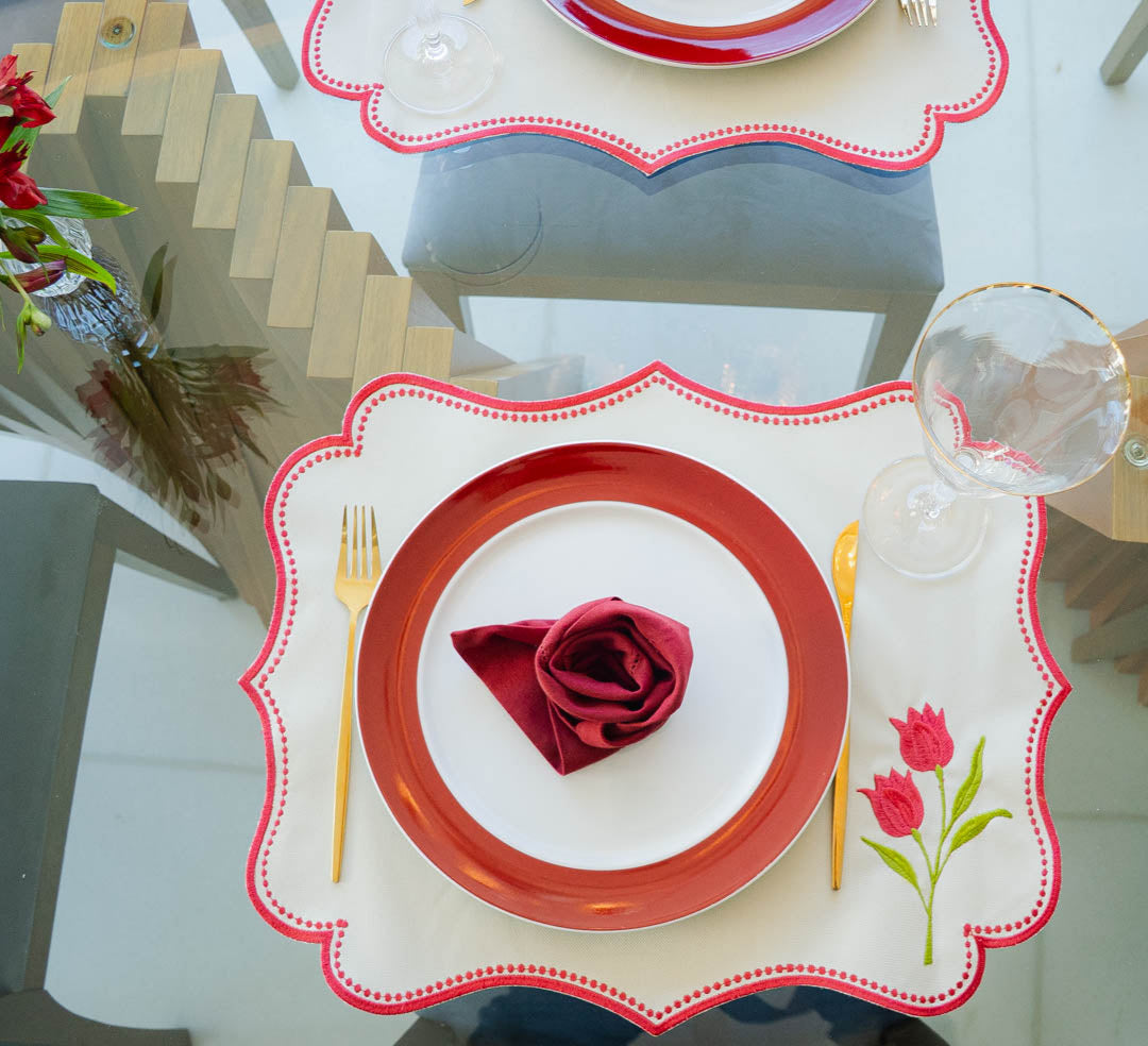 Leve o encanto das flores para a sua mesa com o nosso Jogo Americano Tulipa Rosa. Com design elegante e bordado delicado inspirado nas formas suaves da tulipa, ele combina romantismo e sofisticação em cada detalhe. Confeccionado em linho misto de alta qualidade, possui caimento impecável e acabamento refinado, ideal para compor mesas elegantes em ocasiões especiais ou no dia a dia com charme.