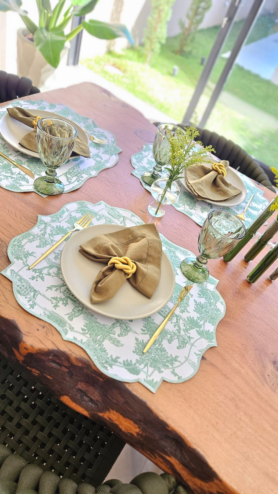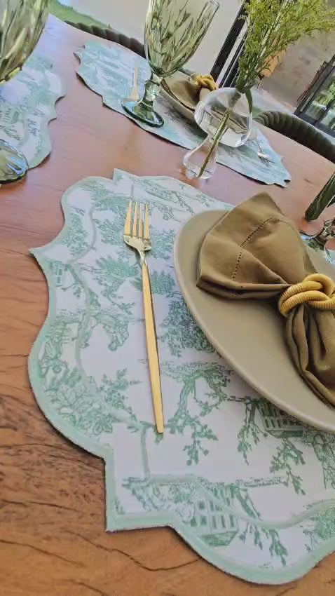 Inspirado na tradicional estampa francesa Toile de Jouy, o Petals Joie une a delicadeza dos traços clássicos à funcionalidade do tecido impermeável. O design atemporal, é a escolha perfeita para quem valoriza mesas bem postas com história, elegância e originalidade.