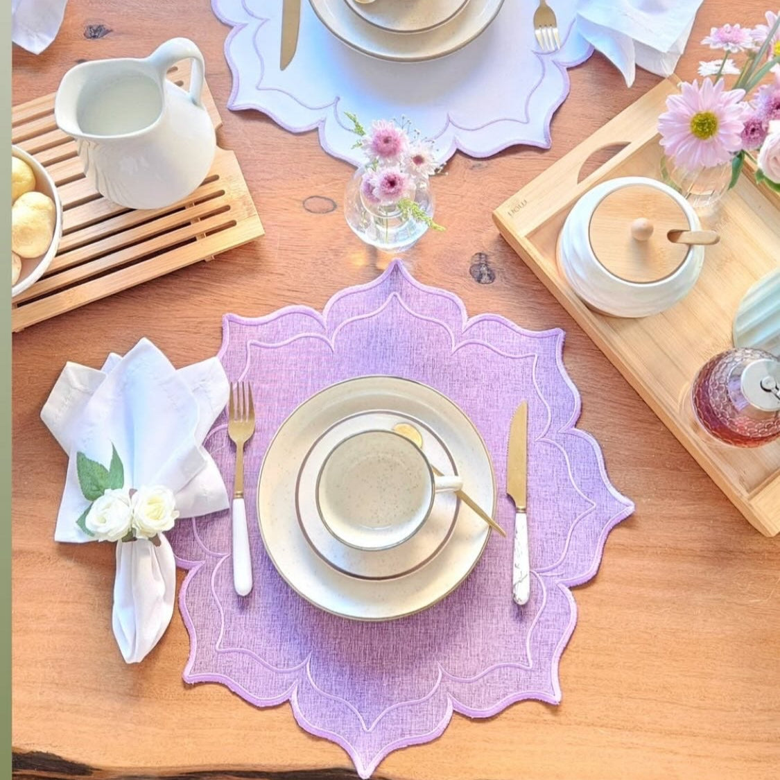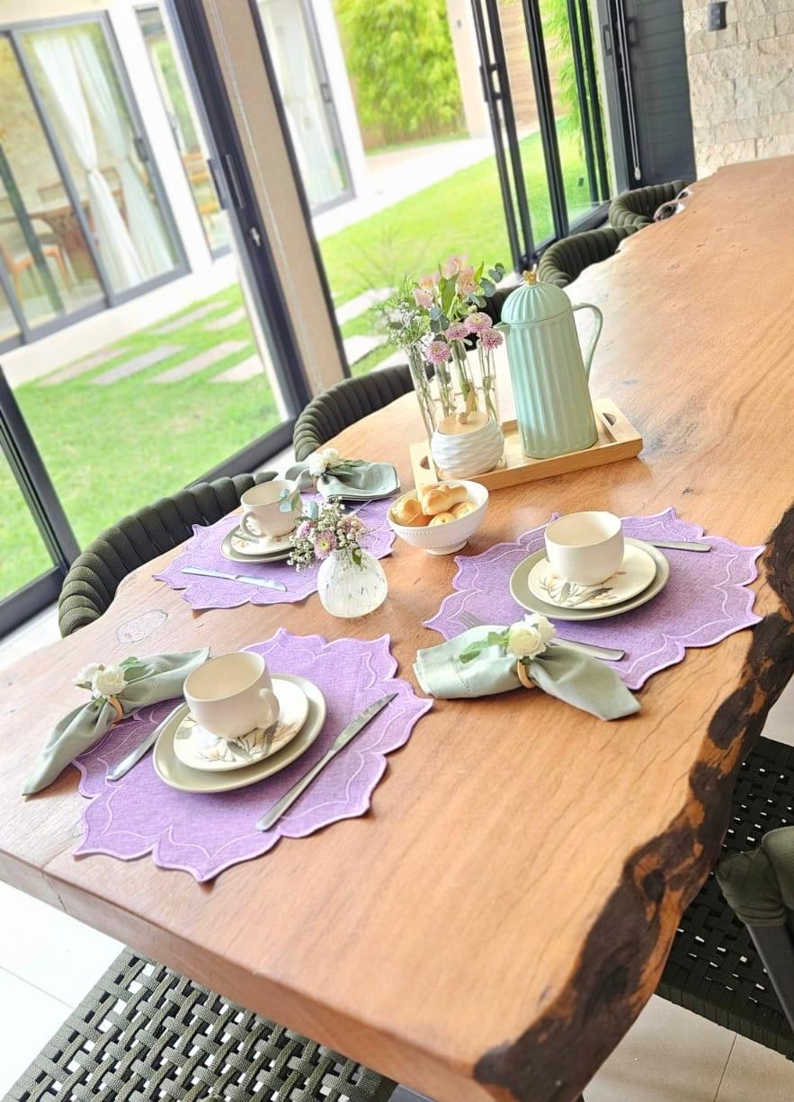 O Jogo Americano Petals Lavanda une praticidade e charme para deixar sua mesa posta ainda mais especial.